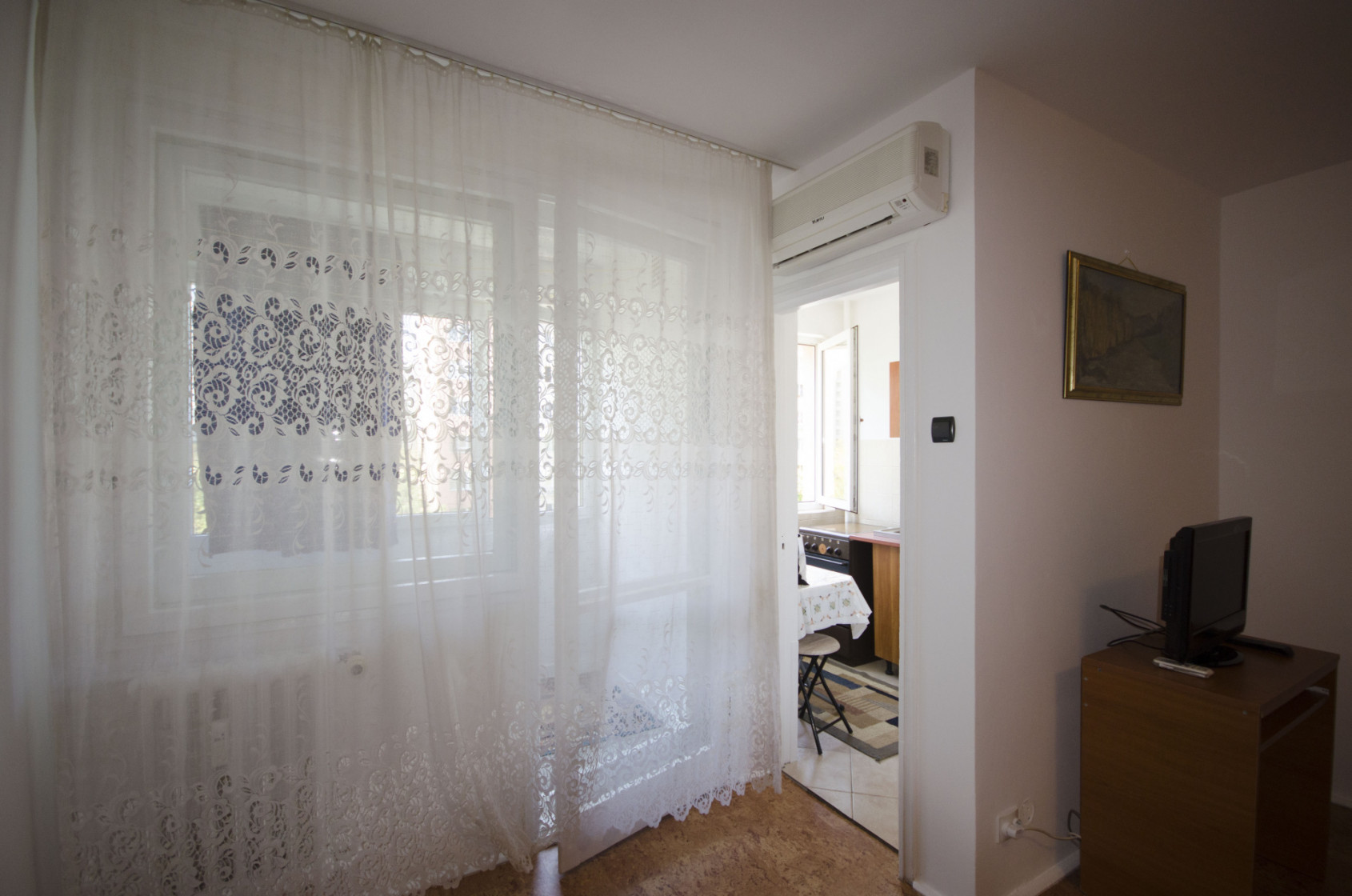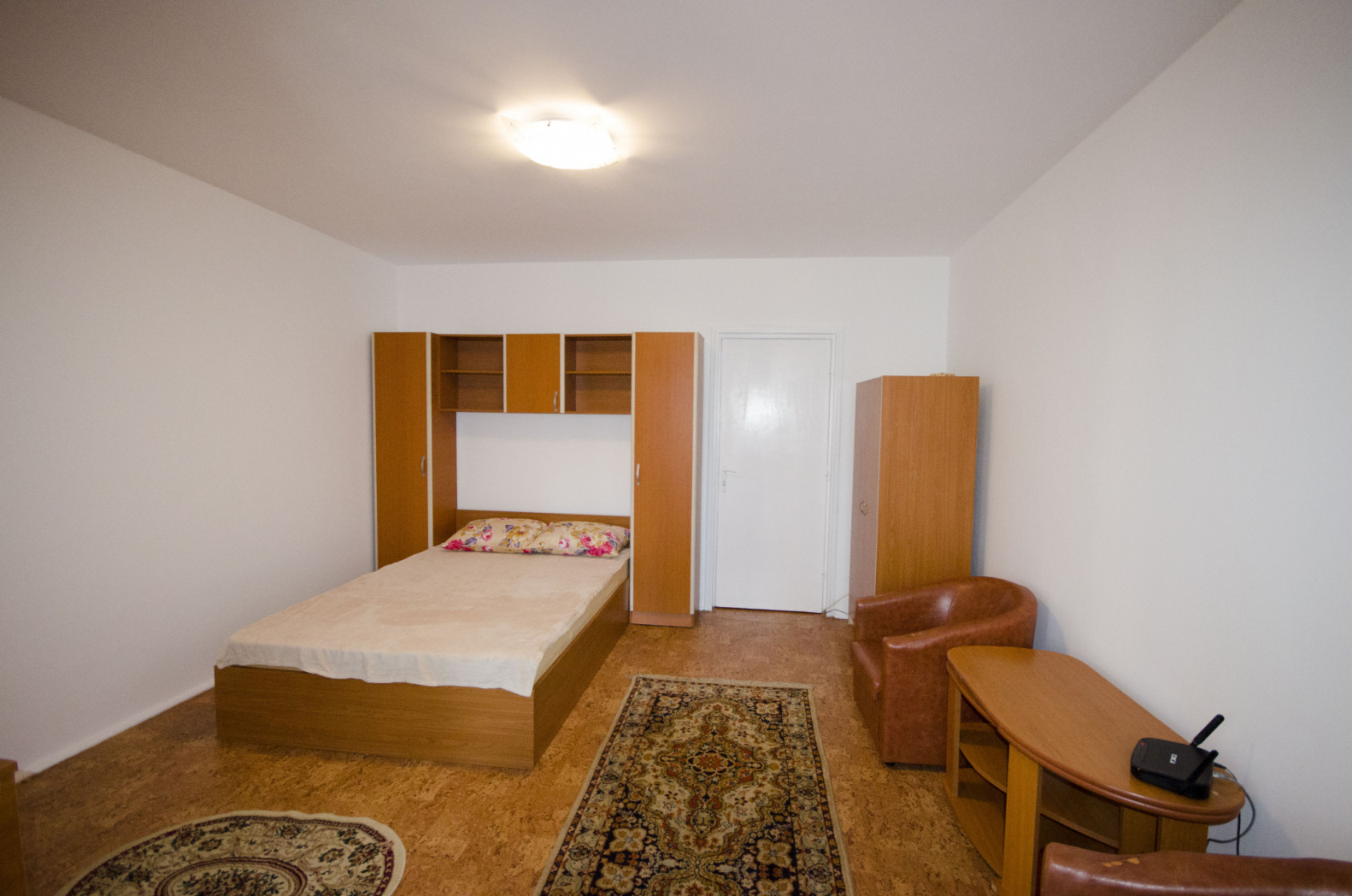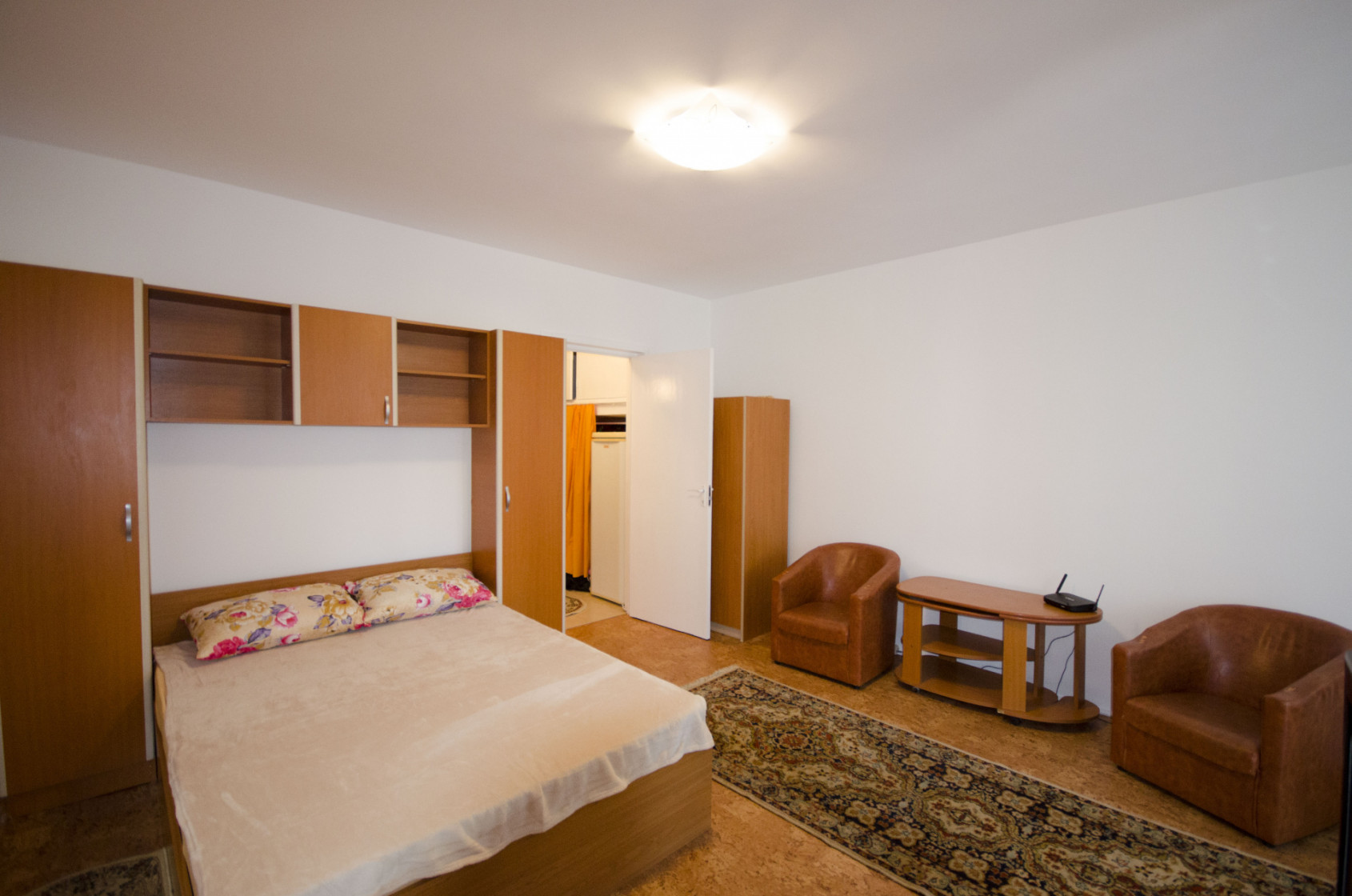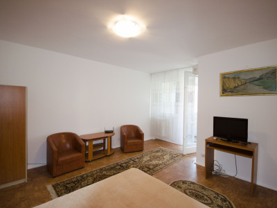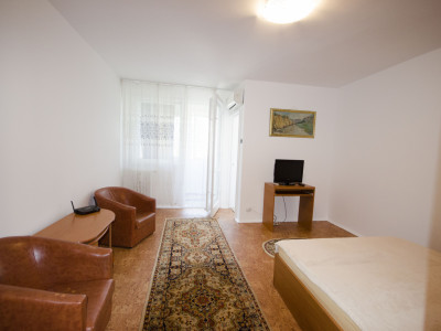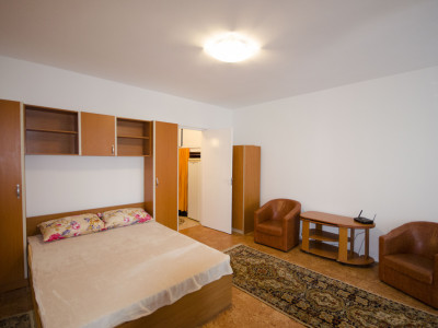 Garsoniera dispune de un spațiu bine compartimentat, luminos și aerisit, oferind un ambient confortabil și funcțional. Mobilierul este modern și practic, iar dotările includ electrocasnicele necesare pentru un trai confortabil.