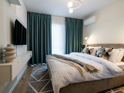 Bucătăria este complet utilată cu electrocasnice noi și mobilier modern, astfel încât veți putea pregăti mesele preferate cu ușurință și confort. În dormitor, patul dublu confortabil vă va oferi un somn odihnitor și relaxant, iar dulapurile spațioase vă vor oferi suficient spațiu de depozitare pentru haine și alte lucruri personale.