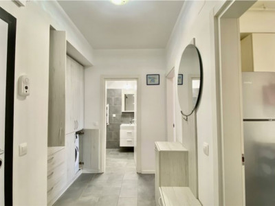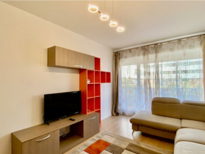 Va oferim spre inchiriere un apartament de 2 camere, decomandat, utilat, mobilat modern, locuinta dispune de centrala proprie, incalzire in pardoseala, A/C, masina de spalat vase, masina de spalat, TV, loc de parcare. Situat in zona de Nord a capitalei pe soseaua Chitilei in complexul Atria Urban Resort cu iesire rapida catre linia de centura cat si catre centrul orasului. Situat la parterul unui imobil de 4 etaje apartamentul beneficiaza de curte proprie cu o suprafata de 24 mp, spati comune, piscina, loc de joaca.