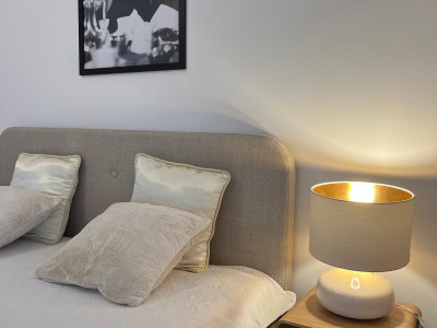 Parchet de stejar masiv, holuri cu mozaic slefuit si ceruit, baie cu gresie si faianța, tamplarie termopan cu sisteme performante de inchidere. Mobilier modern cu accente shabby chic.
