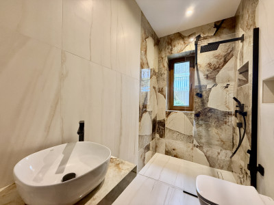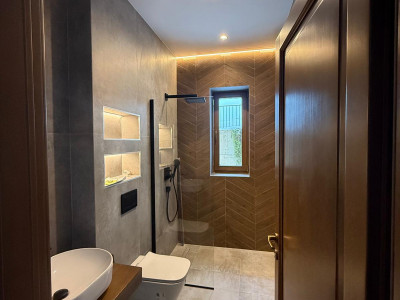 ✨ Baie complet placată cu ceramică Marazzi, un simbol al luxului discret.