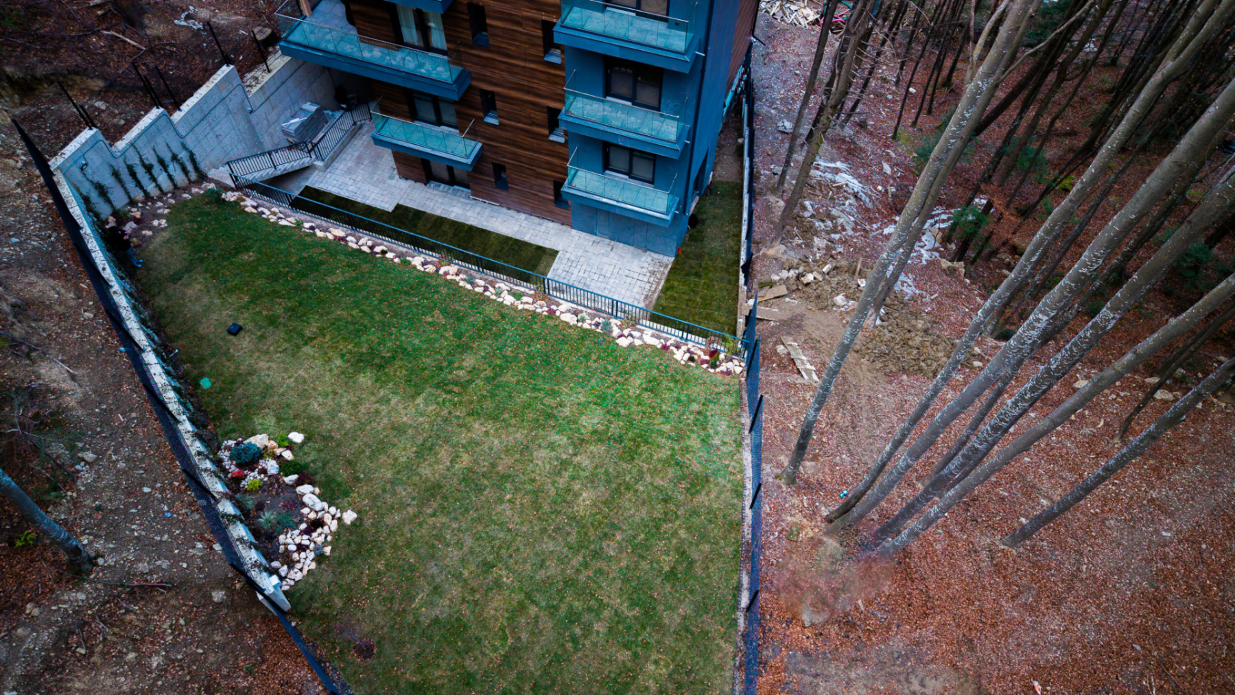 · Curte privată cu gazon, creează o micro-oază verde proprie.