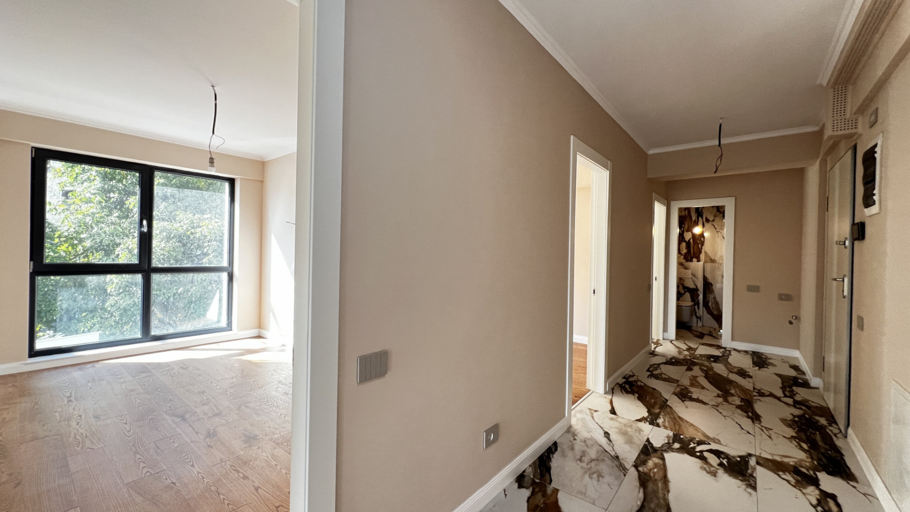 Apartament cu 4 camere in suprafata utila de 93 mp la care se adauga o terasa si un balcon cu acces din dormitorul matrimonial.