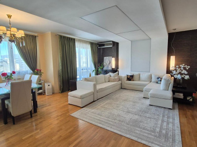 Proprietatea este amplasată la etajul 4 și beneficiază de o suprafață totala costruita de 176,44 mp, suprafata totala a apartamentului fiind de 154 mp, o compartimentare excelentă și lumină naturală. Zona de zi este reprezentată de un living spațios de 45 mp, cu zonă de dining și acces direct către terasă. Bucătăria este închisă, complet mobilată și utilată.