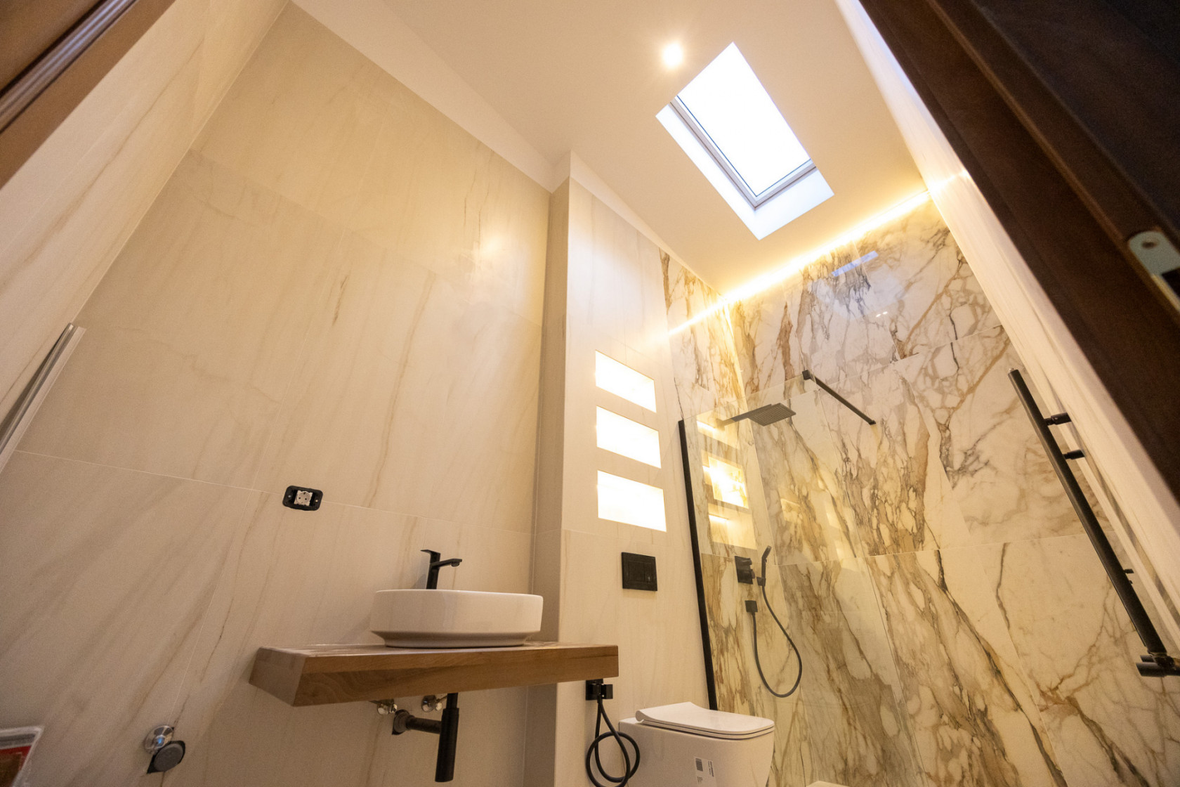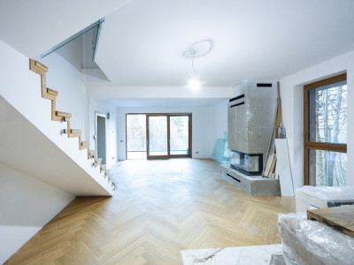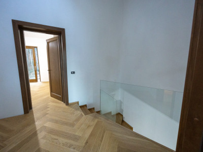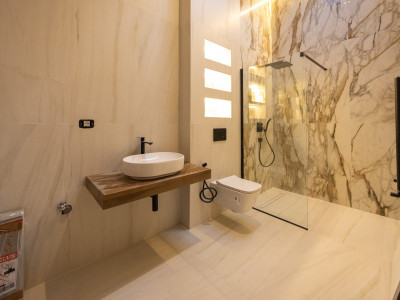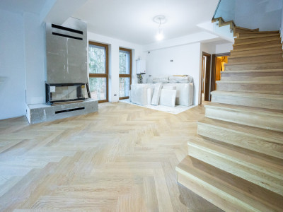 🔹 Parchet din stejar natural, tip Herringbone, pentru o ambianță caldă și sofisticată🔹 Încălzire în pardoseală, controlată pe zone, pentru confort absolut în sezonul rece🔹 Ceramică premium Marazzi în băi – design italian, rezistență și eleganță🔹 Obiecte sanitare și baterii de top (Geberit, Hansgrohe)🔹 Uși interioare din lemn, finisate atent, în ton cu arhitectura proiectului
