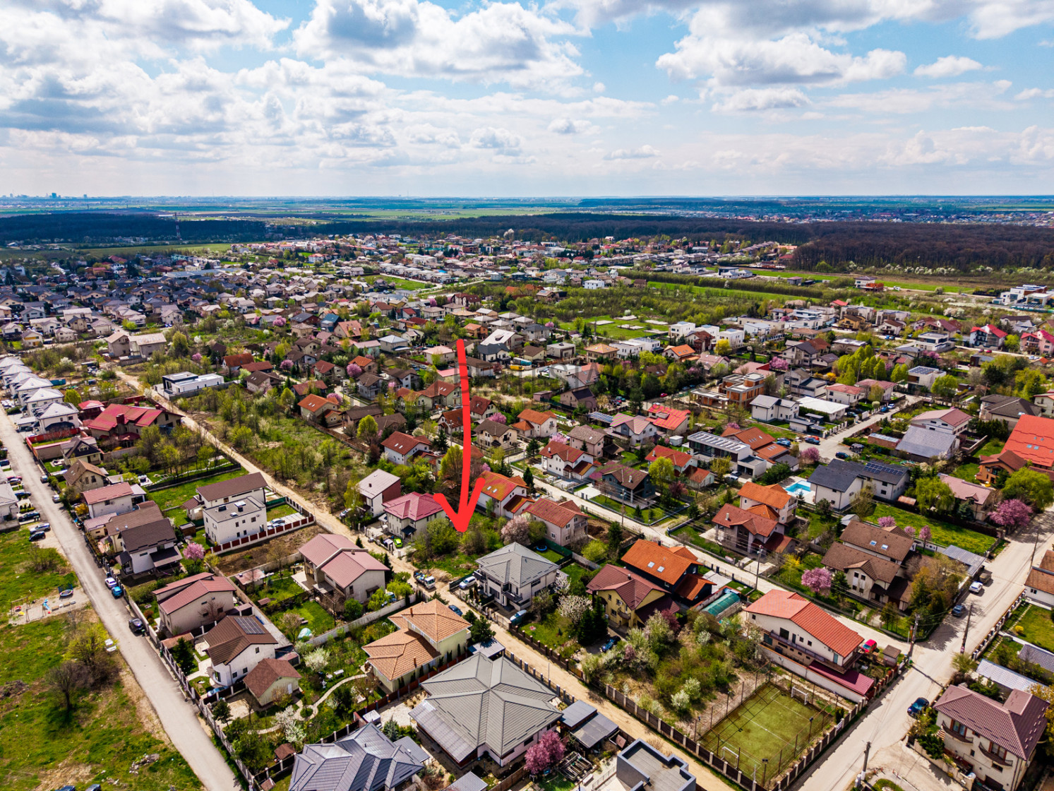 Terenuri cu aceasta configuratie — suprafata buna, deschidere mare, utilitati la strada, intre case — se misca repede.